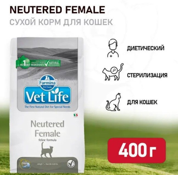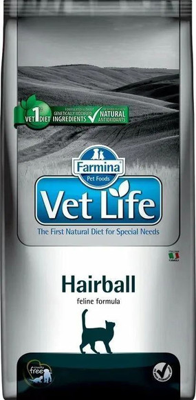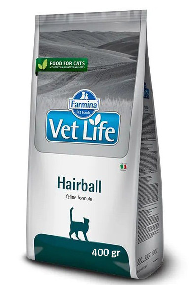 Корм сухой Farmina Vet Life Cat Hairball, для взрослых кошек, для выведения шерстяных комочков, 400г