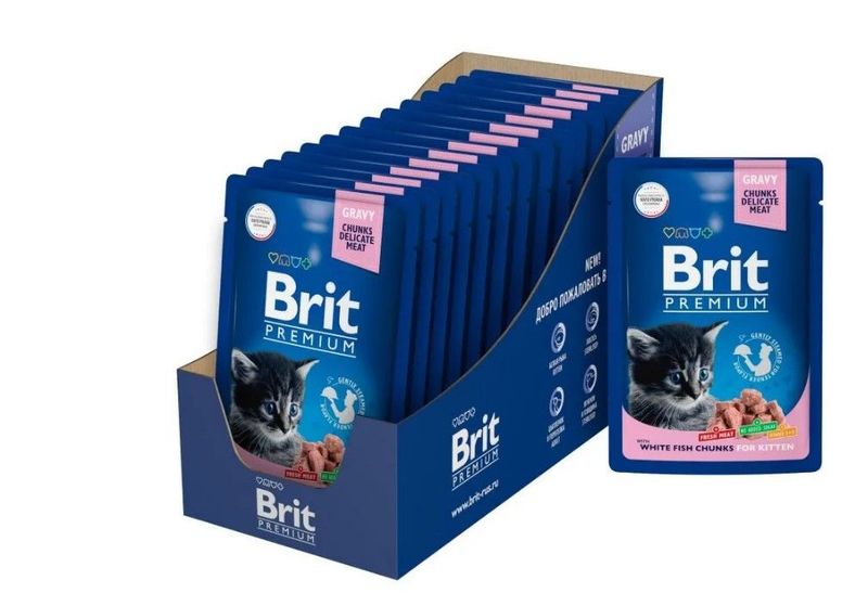 Мясо и мясные субпродукты 60 %, белая морская рыба и рыбные субпродукты 15 %, мука рисовая, мука пшеничная, минерально-витаминный комплекс, загуститель.