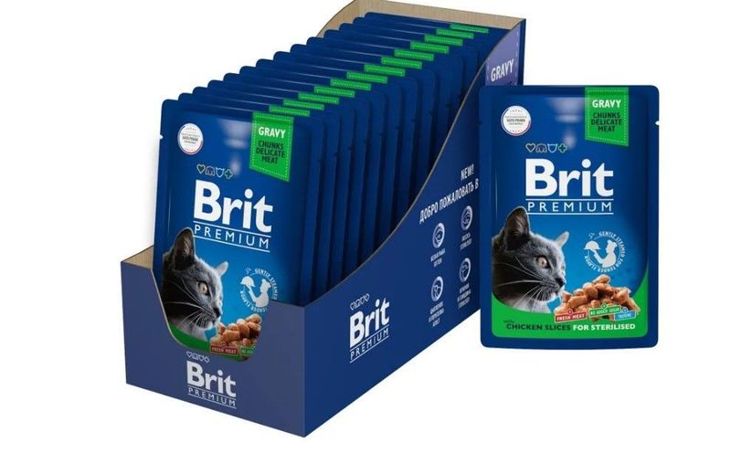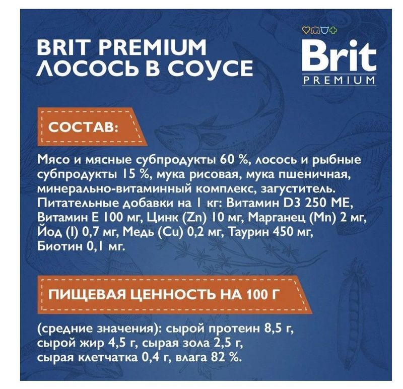 Мясо и мясные субпродукты 75 % (в том числе мясо цыплят 10 %), мука рисовая, мука пшеничная, минерально-витаминный комплекс, загуститель.
