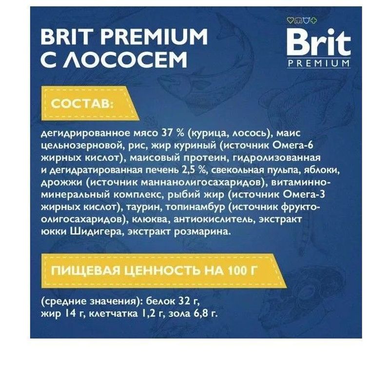 BRIT PREMIUM, Сухой корм с лососем дл...