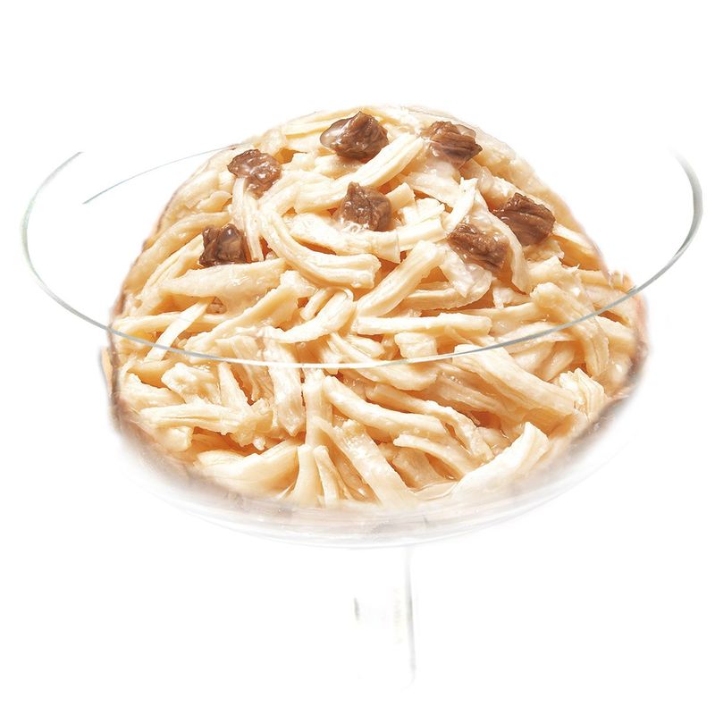 Супер-премиальный влажный корм для кошек CIAO Kinnodashi (ЧАО КИННОДАШИ) от японского производителя Inaba приготовлен на основе кусочков филе фермерской курицы с добавлением говядины в аппетитном насыщенном бульоне золотистого цвета. Внутри упаковки пауча ароматные нежные волокна в желе, которые подойдут даже самым привередливым кошкам и кошкам с чувствительным пищеварением.