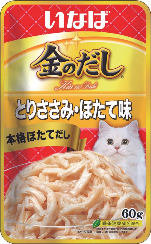 INABA Корм влажный для кошек Kinnodashi Куриное филе со вкусом морского гребешка, пауч 60г*12шт(720гр.)