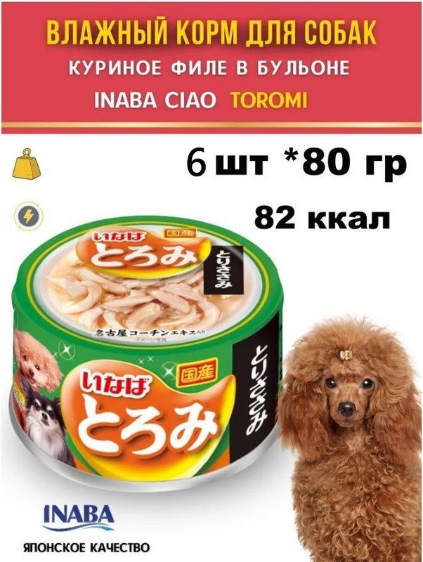 INABA Toromi корм влаж. д/собак кур.филе конс. 6 шт по 80г(480гр)