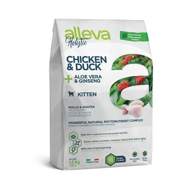 Ингредиенты: дегидратированная курица (45%), свежая курица без костей (20%), дегидратированная утка (12%), батат, куриный жир, гороховый крахмал, рыбий жир, куриная печень, корень цикория (источник инулина и ФОС), волокна гороха, подорожник, инактивированные сухие пивные дрожжи (источник МОС), куриные хрящи (источник глюкозамина и хондроитина), карбонат калия, Алое вера (0,10%), корень женьшеня (Panax ginseng) (0,10%), розмарин лекарственный, куркума длинная, гвоздика, лимон (Rosmarinus officinalis, Curcuma longa, Eugenia caryophyllus, Citrus sp.) - (0,05%), сок юкки.