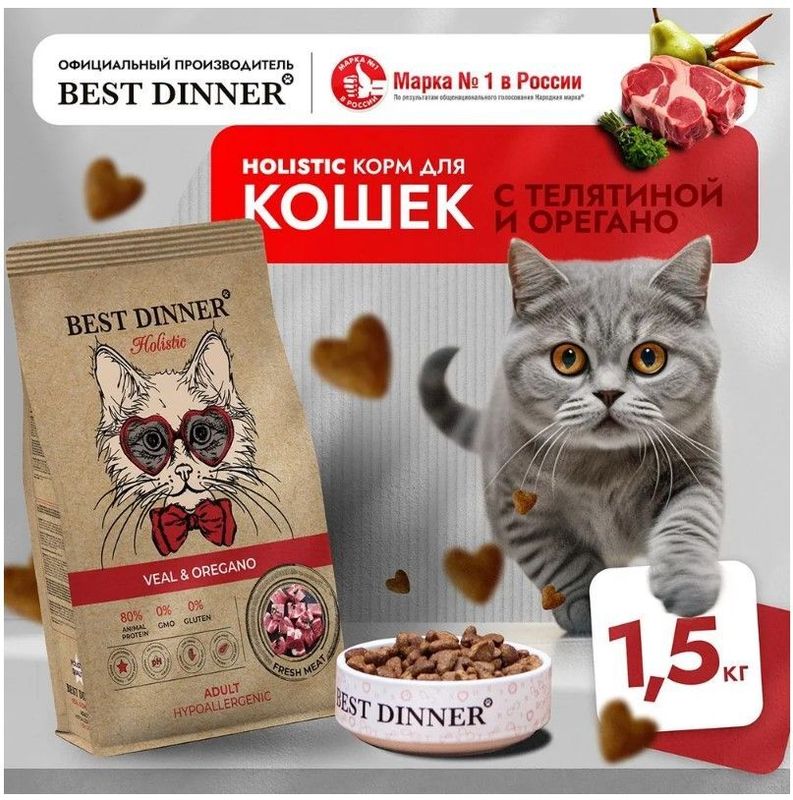 Высококачественный полнорационный корм для кошек Best Dinner , создан с учетом физиологических потребностей кошек. Питательное мясо богато всеми необходимыми аминокислотами для здоровья питомца а высокое содержание омега-3 и -6 ненасыщенных жирных кислот, сделают шерстку вашего питомца блестящей и шелковистой. Клюква и DL - метионин, добавленные в рецептуру профилактируют мочекаменную болезнь, а юкка Шидигера прекрасно подойдет для вывода шерсти и устранения неприятных запахов из лотка.Гранулы в форме сердечек не оставят равнодушными даже самых привередливых кошек.