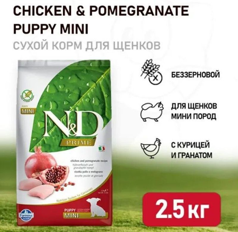 Корм сухой Farmina, для щенков мелких пород, с курицей и гранатом, беззерновой, 2,5кг