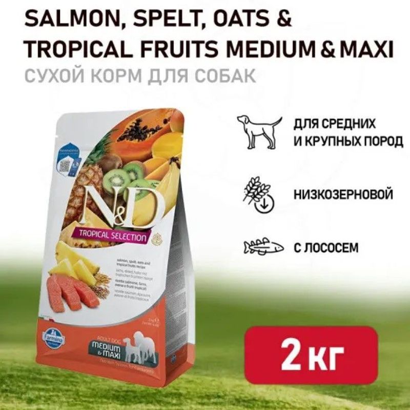 N&D Tropical selection - это новая линия кормов, разработанная Farmina, изготовленная из зерновых с низким гликемическим индексом (полбой и овсом) и различных тропических фруктов для хорошего самочувствия кошек и собак.