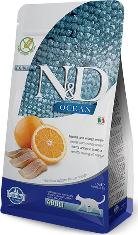 Корм сухой Farmina N&D Ocean, для взрослых кошек, с сельдью и апельсином, 5кг