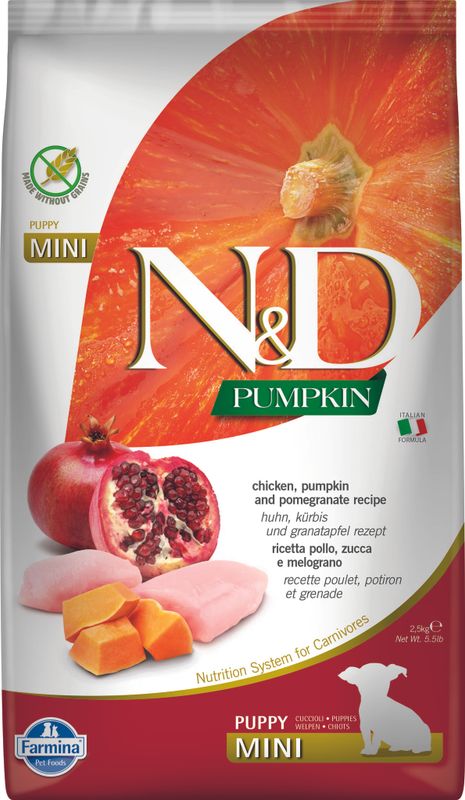 Собаки в естественной среде обитания потребляют исключительно мясо и не нуждаются в высоком уровне углеводов. Следуя этой философии, FARMINA разработала инновационную линейку N&D Pumpkin Formula. Это линейка беззерновых кормов с высоким содержанием ингредиентов животного происхождения (более 60 %) и тыквой, овощем с превосходными питательными свойствами.