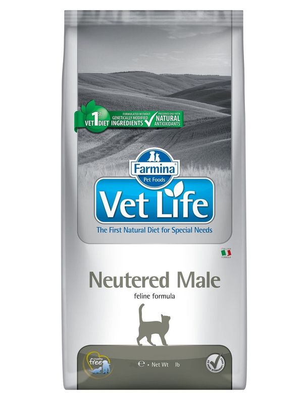 Farmina Vet Life Neutered Male полнорационное и сбалансированное питание для взрослых кастрированных котов.