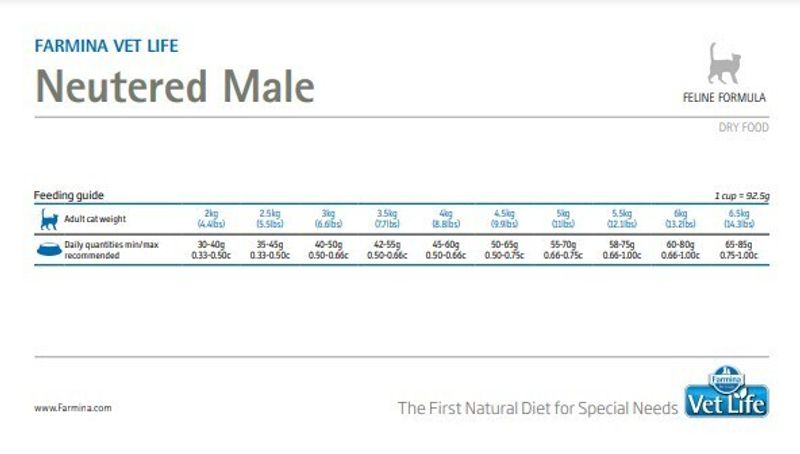Farmina Vet Life Neutered Male полнорационное и сбалансированное питание для взрослых кастрированных котов.