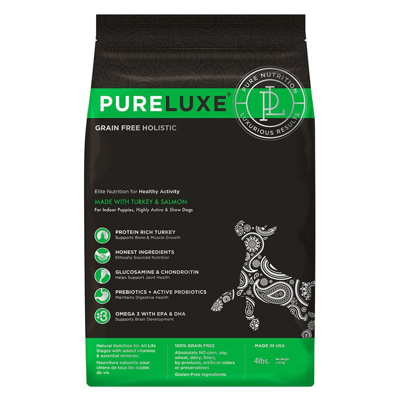 Корм сухой PureLuxe, для активных собак, с индейкой и лососем, 10,89кг