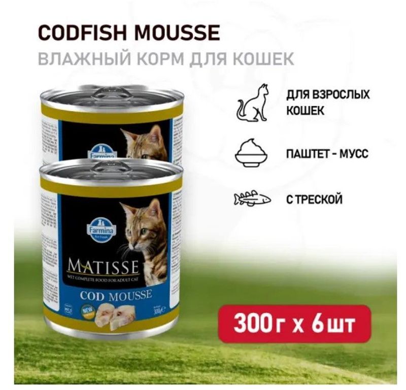 Корм влажный Farmina Matisse Codfish Mousse, для взрослых кошек, мусс с треской, 1800г (300г x 6 шт.)