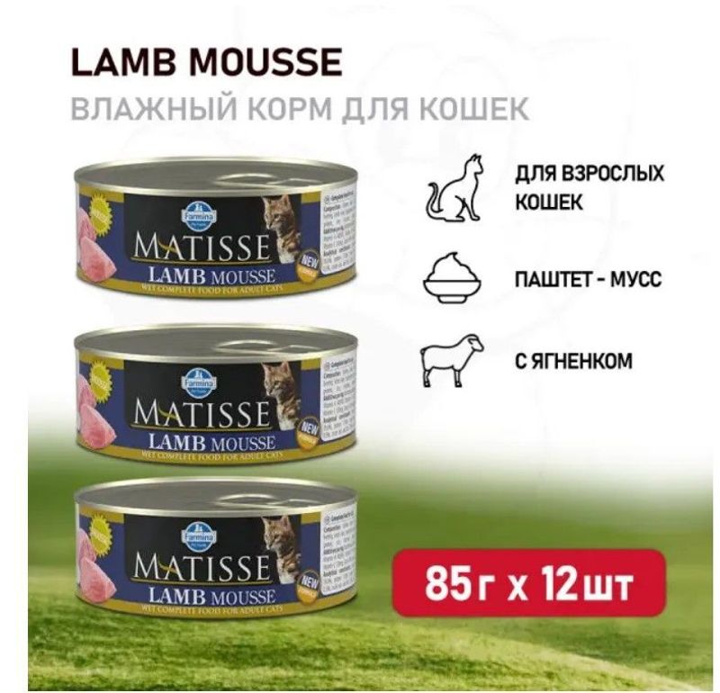 Корм влажный Farmina Matisse Lamb Mousse, для взрослых кошек, мусс с ягненком, 1020г ( 85г x 12 шт. )