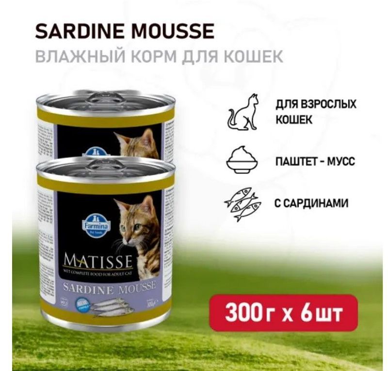 Корм влажный Farmina Matisse Sardine Mousse, для взрослых кошек, мусс с сардиной, 1800г ( 300г x 6 шт. )
