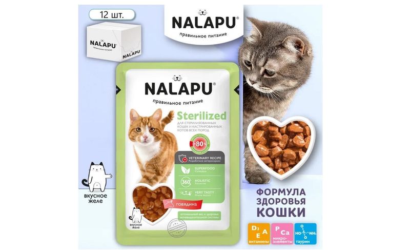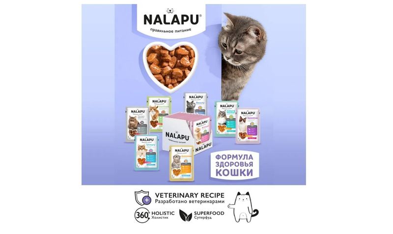 более 80% мясных ингредиентов в каждом кусочке: мясо и мясные субпродукты, мясо домашней птицы, рыба и рыбные продукты (форель мин.6,0%), мука из цельнозерновой пшеницы, меланж, пивные дрожжи, спирулина, витамины, минеральные вещества, Омега.