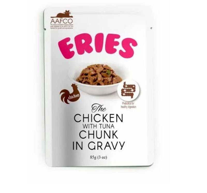 Ингредиенты: курица, красное мясо тунца, пшеничная мука, куриная печень, минералы и витамины, гидролизат куриного белка, вкусовая добавка, гуаровая камедь, экстракт юкки, пребиотики (инулин, FOS, MOS), таурин, вода.