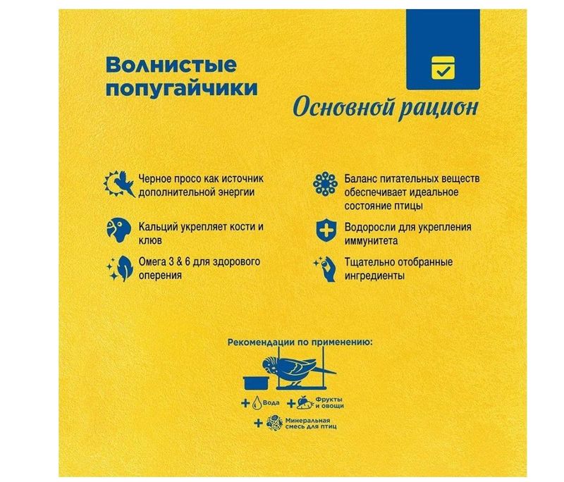Корм Rio "Основной рацион" - тщательно сбалансированная зерновая смесь для ежедневного кормления волнистых попугайчиков. В состав отобраны самые полезные и любимые зерна и семена. Их разнообразие обеспечит птицу всеми необходимыми питательными веществами. Товар сертифицирован.