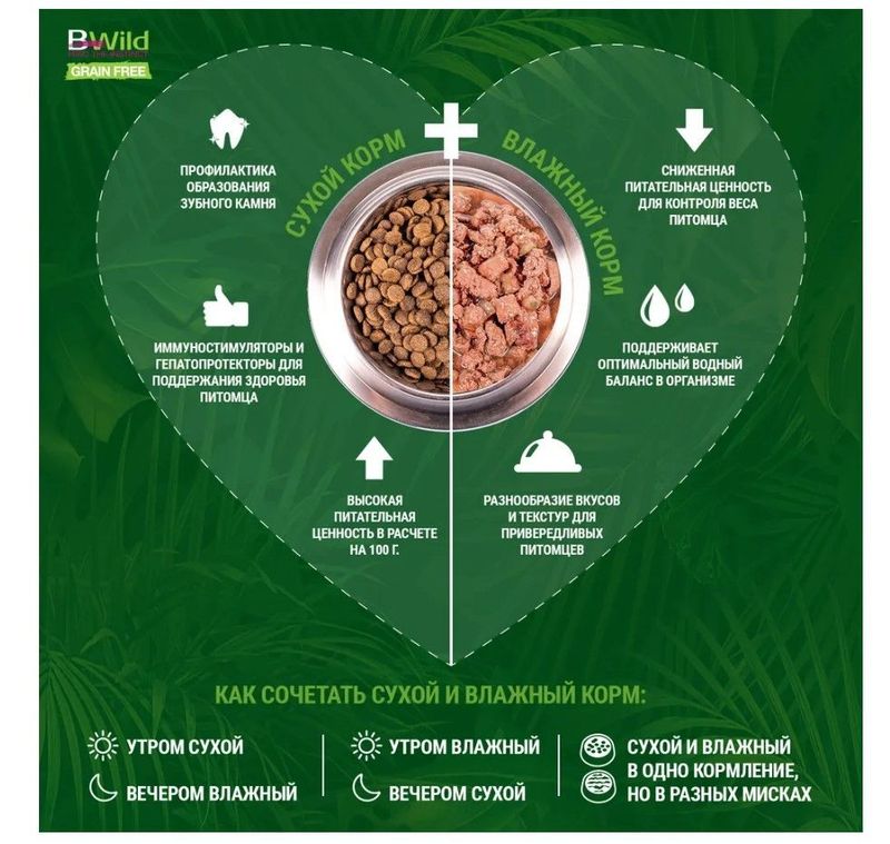 Появление линии кормов BWild GRAIN FREE было обусловлено идеей создания для собак рациона питания, аналогичного тому, которое получали их неодомашненные предки, получавшие высокобелковую пищу и не употреблявшие зерновые продукты.Рацион подходит питомцам склонным к аллергической реакции на глютен, а также для молодых животных, ведущих активный образ жизни.