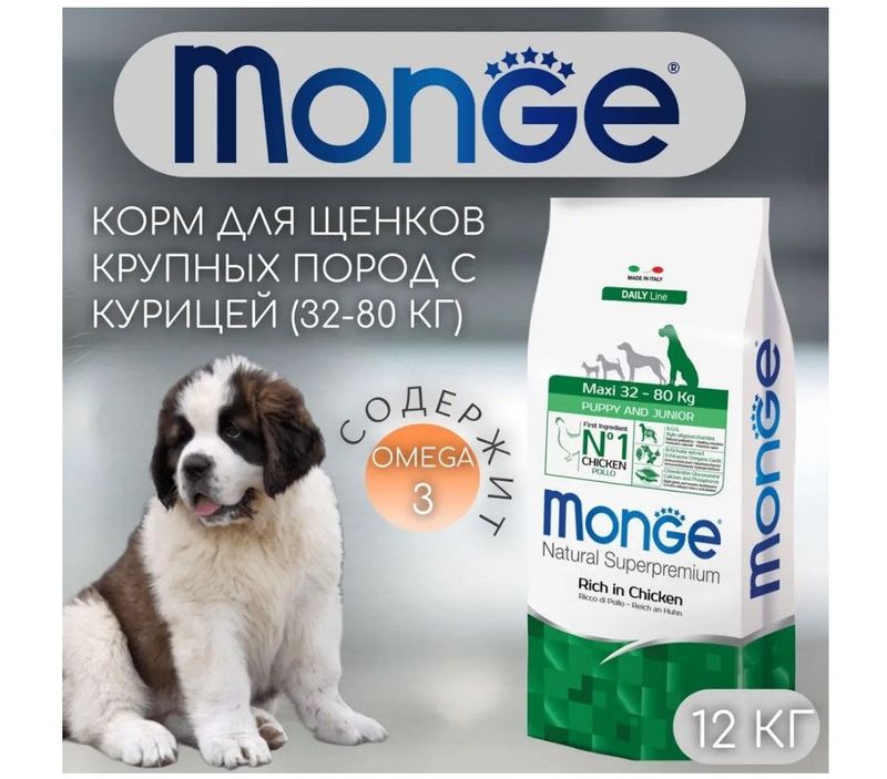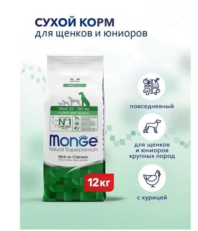 Monge (Монж) Dog Daily Line Puppy & Junior Maxi сухой корм из мяса курицы для щенков крупных пород 12 кг.