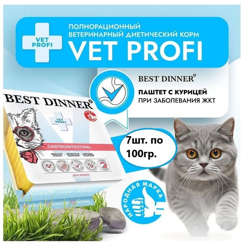 Вашей любимице требуется особый уход и правильное питание? Тогда вам стоит обратить внимание на влажный корм для кошек Best Dinner VET PROFI Gastro Intestinal паштет с нежным вкусом курицы. Этот корм разработан специально для кошек, страдающих заболеваниями ЖКТ, и обеспечивает комплексный уход и поддержку здоровья вашего питомца.Основой является высококачественный кошачий корм, который бережно приготовлен и упакован, чтобы сохранить все полезные свойства и вкусовые качества. Корм для кошек Gastro Intestinal содержит специально подобранные ингредиенты для профилактики избыточного веса. Кроме того, он легко усваивается и не вызывает аллергических реакций.Одной из главных особенностей этого корма является его высокая питательная ценность. Он обогащен всеми необходимыми витаминами и минералами, которые не только легко усваиваются и не вызывают проблем с пищеварением, но и укрепляют иммунитет, улучшают состояние шерсти и общую физическую форму кошки.